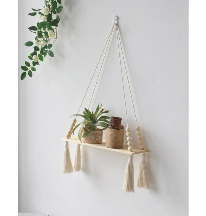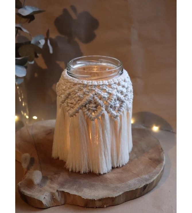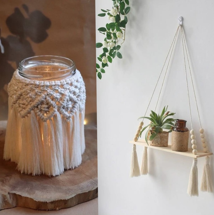 طقم حامل شموع و رف مكرميه و خشب ام دى اف قطعتين
