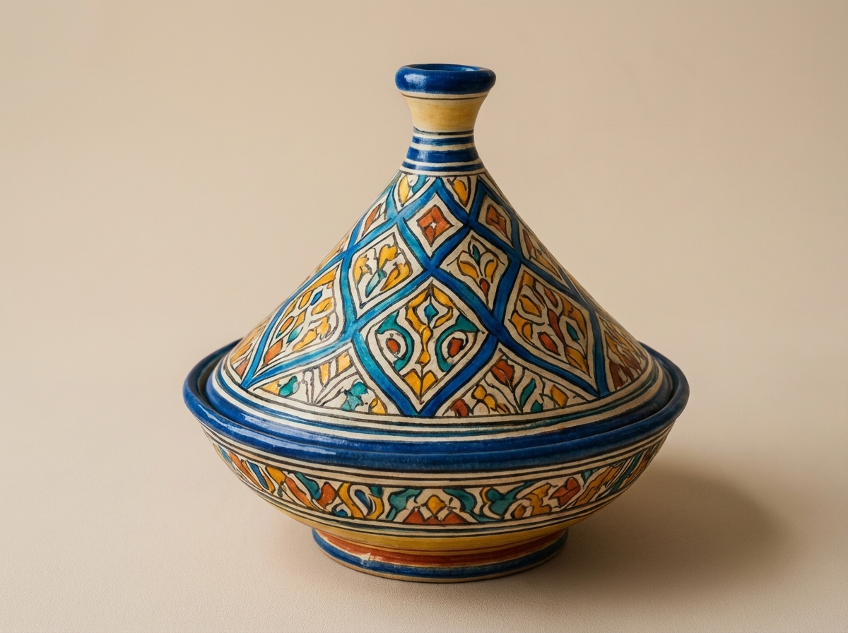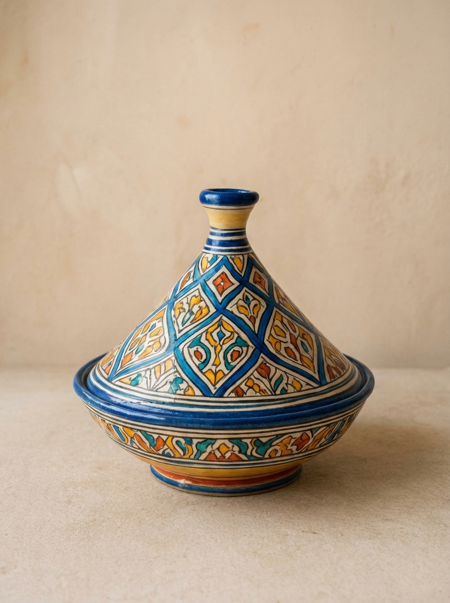 المحتويات: 4 قطع (طاجين، وعاء بغطاء، فازة، كوب صغير)