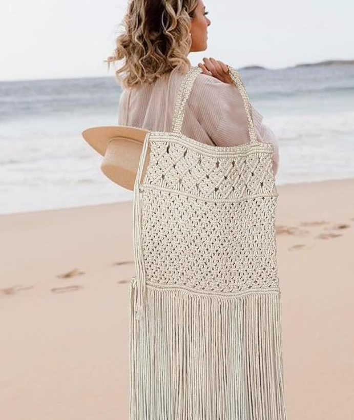 Women Macrame Beach Bag - حقيبة شاطئ نسائية من المكرمية