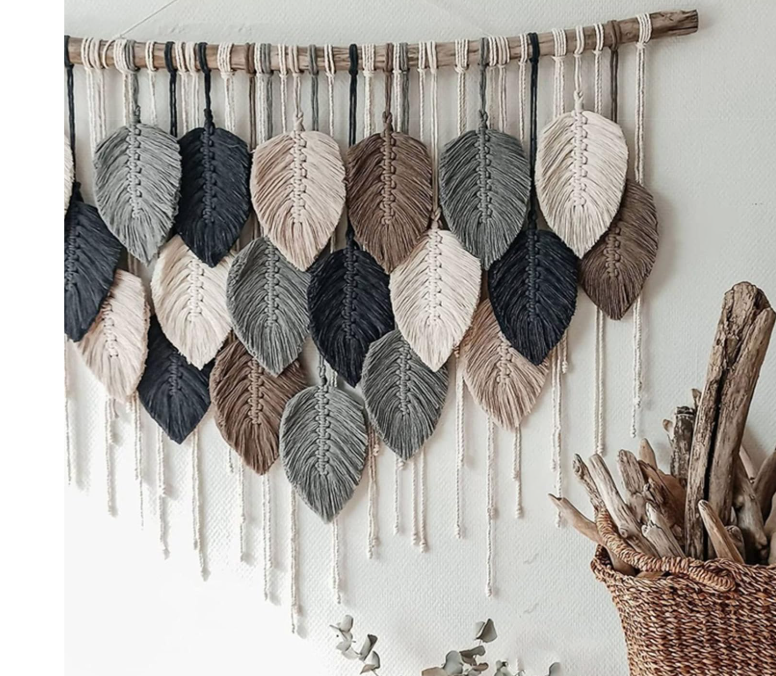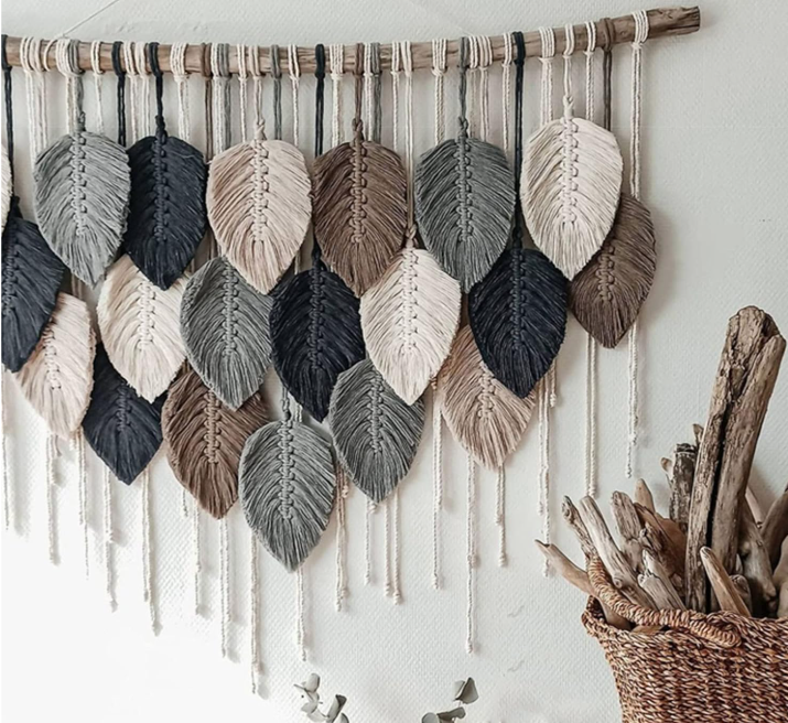 • الأسلوب والتصميم : ستائر مكرمية مستوحاة من الثقافة البوهيمية، هذه الشرابة الساحرة على شكل ورقة شجر هي مزيج جميل من الأناقة والرقة التي تميز الأسلوب البوهيمي التقليدي.