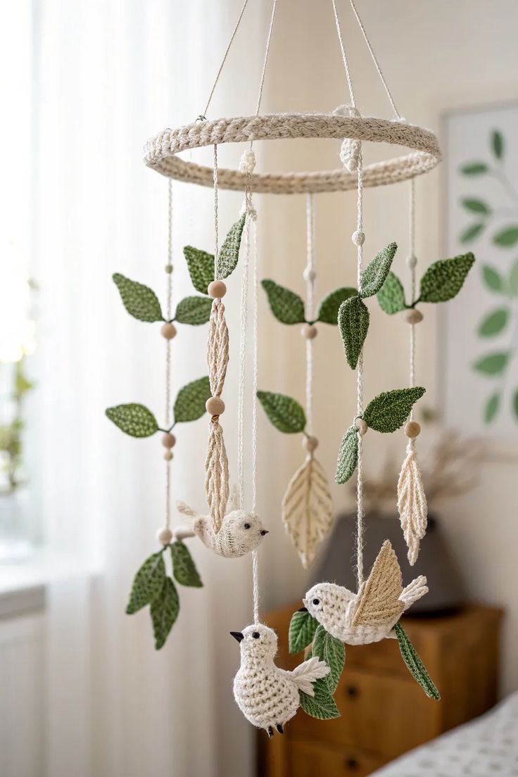 نوع المنتج:موبايل ديكور مُعلّق (Baby Mobile / Hanging Decor)مناسب لغرف الأطفال أو الديكور الهادئ? الخامات:خيوط كروشيه قطن أو صوف ناعمخرز خشب طبيعيحلقة دائرية (غالبًا خشب أو بلاستيك مغلف بالخيط)حبال قطن للتعليقالمميزات:شكل هادي وطبيعي (ستايل Minimal / Boho)آمن لأنه من خامات ناعمةخفيف وسهل التعليقمناسب كهدية