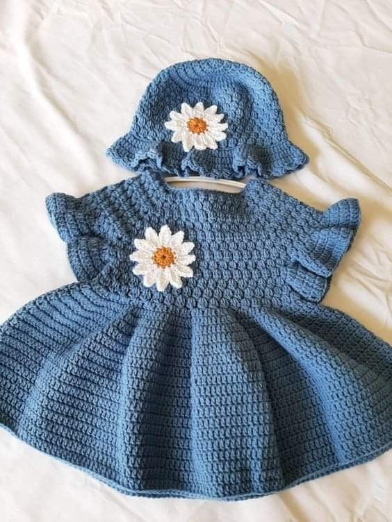النوع: طقم كروشيه للأطفال (فستان + قبعة).