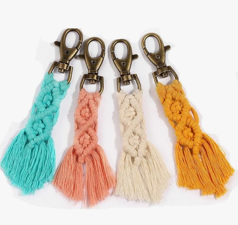 • سلسلة مفاتيح أنيقة بوهيمية: 4 سلاسل مفاتيح صغيرة، مع شرابات بألوان مختلفة، سهلة التنسيق مع العناصر الأخرى، تُعلق على الأغراض الشخصية، مما يضيف لمسة بوهيمية إلى أغراضك.